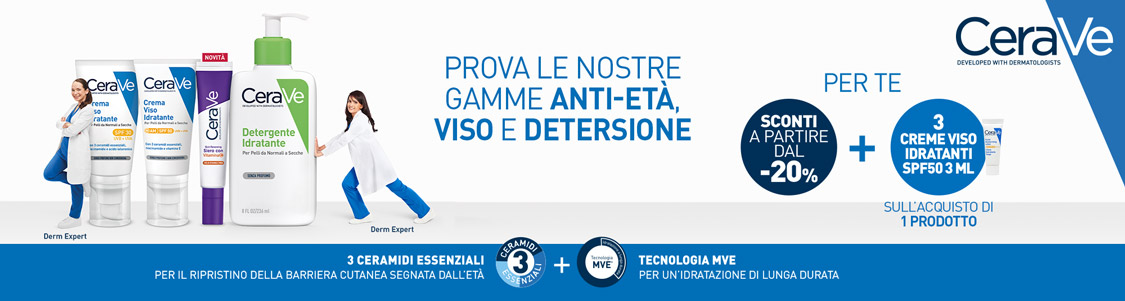 Cerave - Acquista i prodotti con gli sconti a partire dal 20% e ricevi in omaggio 3 minisize Crema Viso SPF50 3 ml