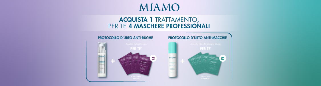 Miamo - Acquista un Retinol Crem e ricevi 4 maschere antiage, acquista Triple Brightening e ricevi 4 maschere schiarenti.